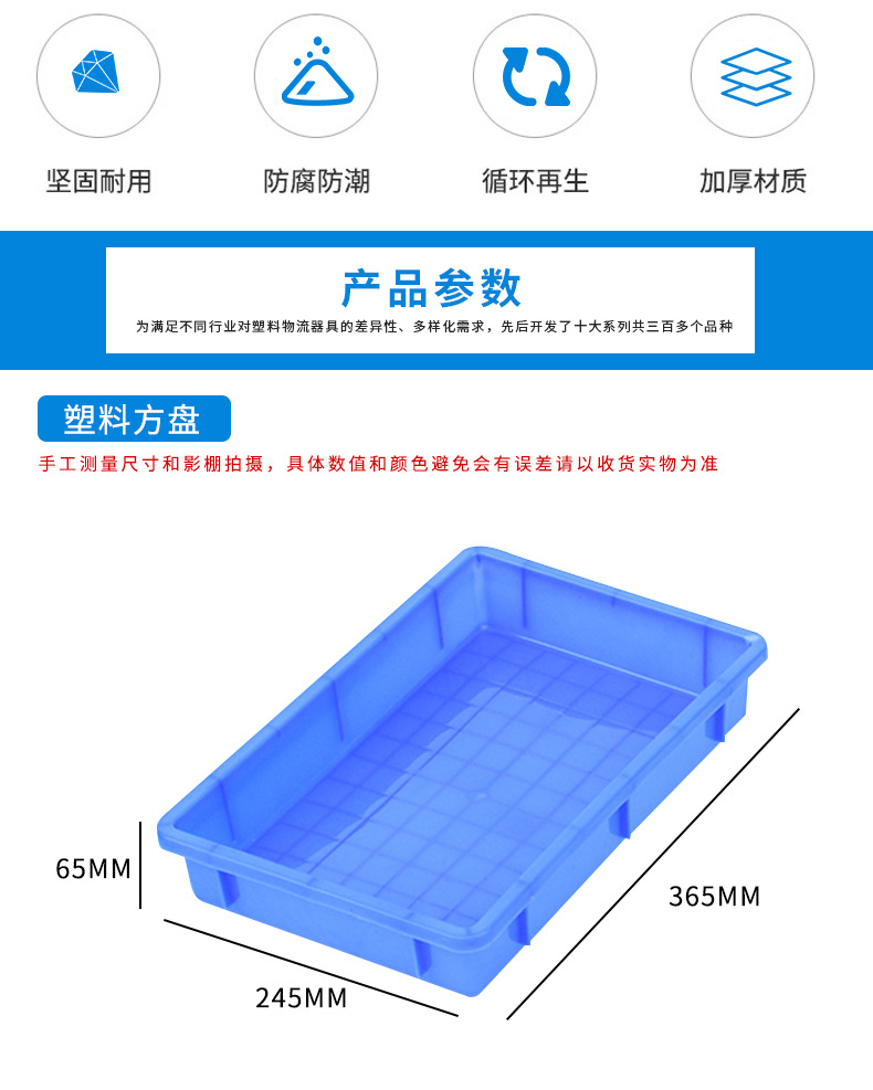當前位置:塑料托盤 > 塑料周轉箱 > 普通周轉箱 > 塑料方盤系列